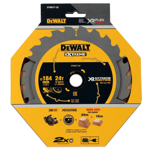 Dewalt 184mm 24t xr circular saw blade - dt99577-qz - 20mm bore