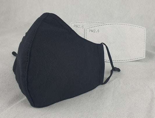 Cotton face mask black 3-ply adjustable reusable with 2 pm2.5 filters