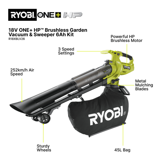 Ryobi Cordless Blower Vacuum - Tool Only - 36V - Mulching Function