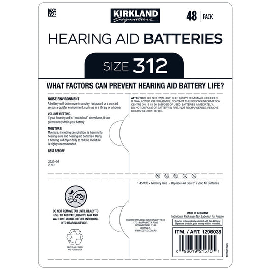 Kirkland signature hearing aid batteries size 312 2 x 48 pack
