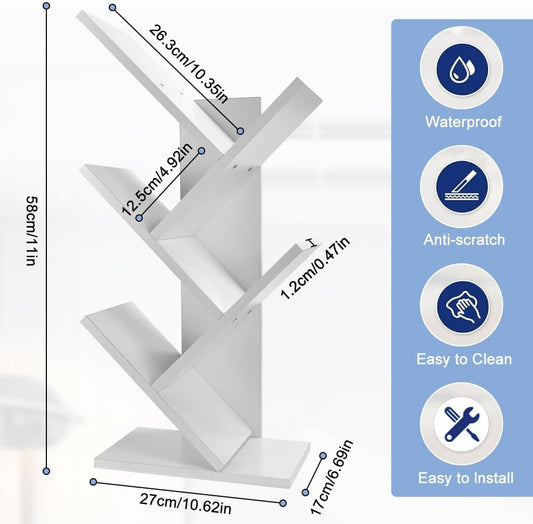 CARLA HOME 5-Tier Tree Bookshelf Storage Rack for Home Office (White)