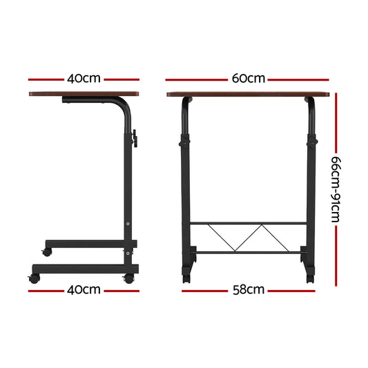 Artiss Mobile Laptop Desk Table with Adjustable Height & Caster Wheels - Dark Wood