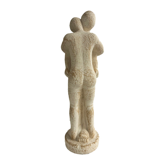 Cement Statue Ornament Hugging Couple Indoor/Outdoor - Distressed Off-White 28cm