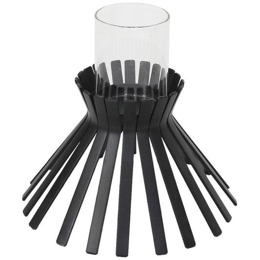 Eclipse Candleholder - Antique Black Iron & Glass, 23x21cm