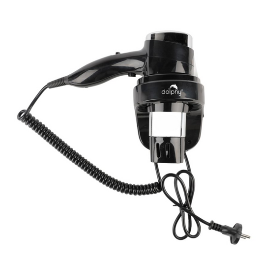 Dolphy wall-mount hair dryer 1600w - black, energy efficient design