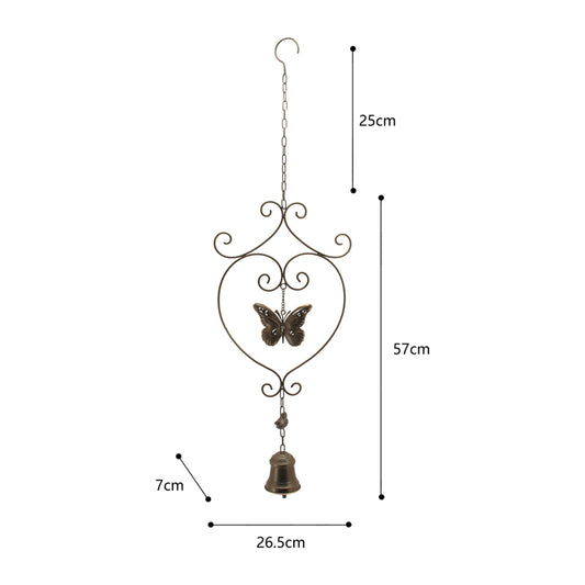 Antique Copper Hanging Butterfly w Bird + Bell 89cm, 100% Metal Decor