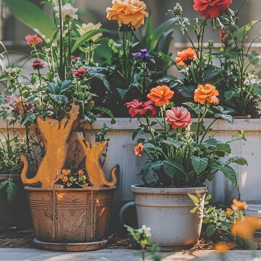 Rust Cat & Kitten Garden Stake 43cm - Hand Painted Galvanised Metal Ornament