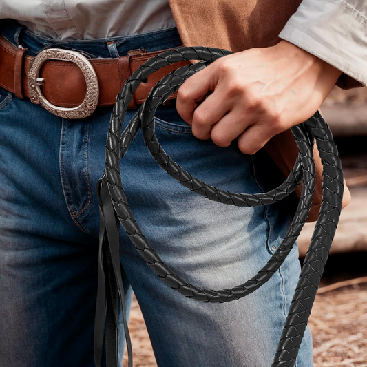 BLACK WHIP Faux Leather Costume Party 180cm Riding Cowboy Fancy Dress