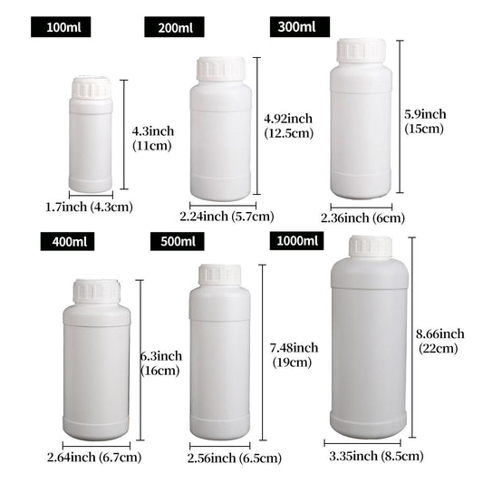 50pcs 300ml White Plastic Chemical Bottles with Screw Cap for Lab Storage
