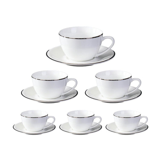 Apricot 6PCS Ceramic Coffee Cup and Saucer Set - 160ml, Elegant Design, Comfortable Handle