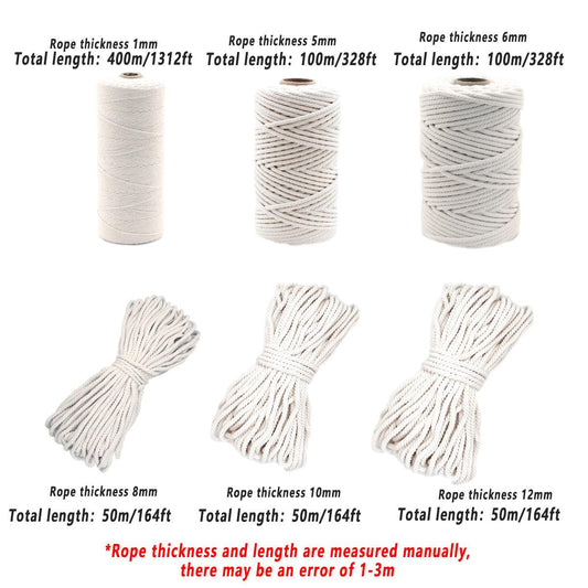Cotton Rope Macrame Cord 12mm x 50m, Natural Cotton, DIY Craft, Binding String