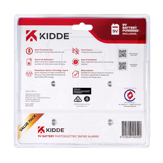 Kidde k501 smoke alarm 2 pack - photoelectric, 9v battery, easy install, 5-year warranty
