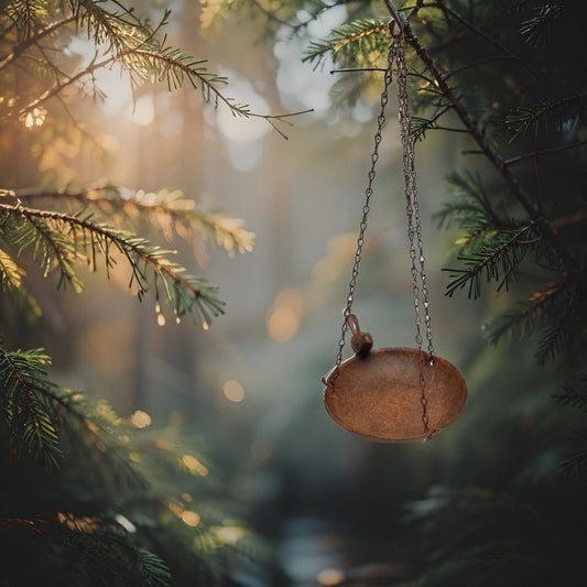 Hanging Cast-Iron Rust Birdfeeder w Bird 40cm