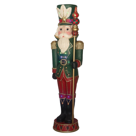 Pre-lit 182.8cm Carved Nutcracker with LED Lights & Music, Polyresin, Indoor/Outdoor