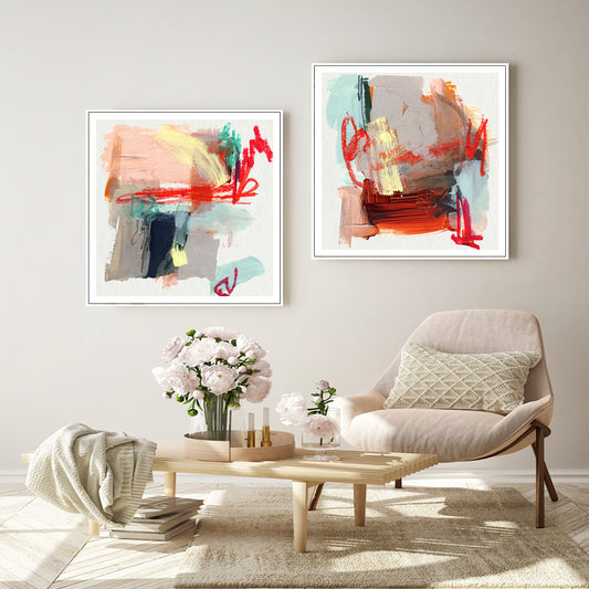 Wall art 80cmx80cm abstract colourful garden 2 sets white frame canvas