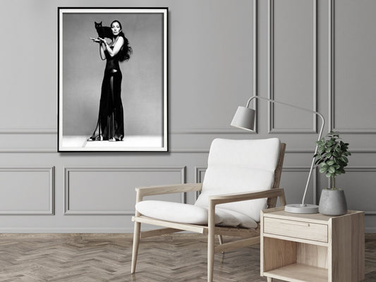 Wall Art 90cmx135cm Cher Music Black and White, Black Frame Canvas