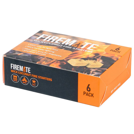 Firemate Wick Coconut Fire Starters 6 Pack - 135mm x 17.5mm x 35mm - Non-Toxic