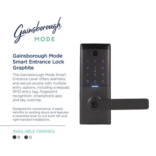 Gainsborough Mode Smart Entrance Lever Lock - Graphite - RFID, Fingerprint, Keypad - 115mm x 230mm x 52mm