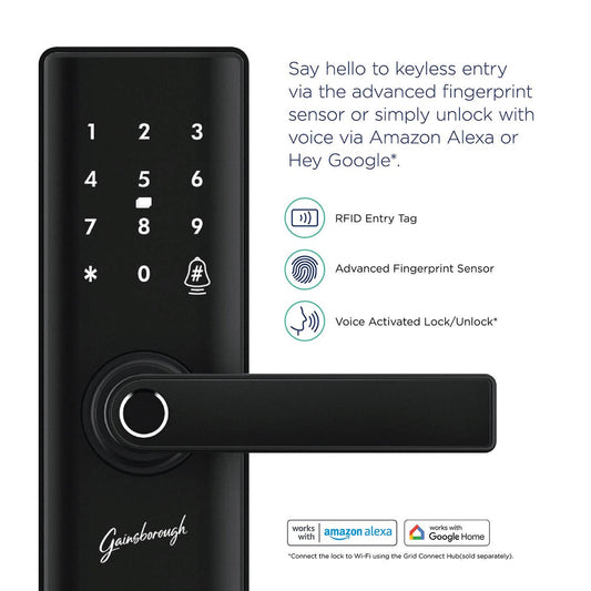 Gainsborough Liberty Smart Lever Lock - Fingerprint Access - Matte Black