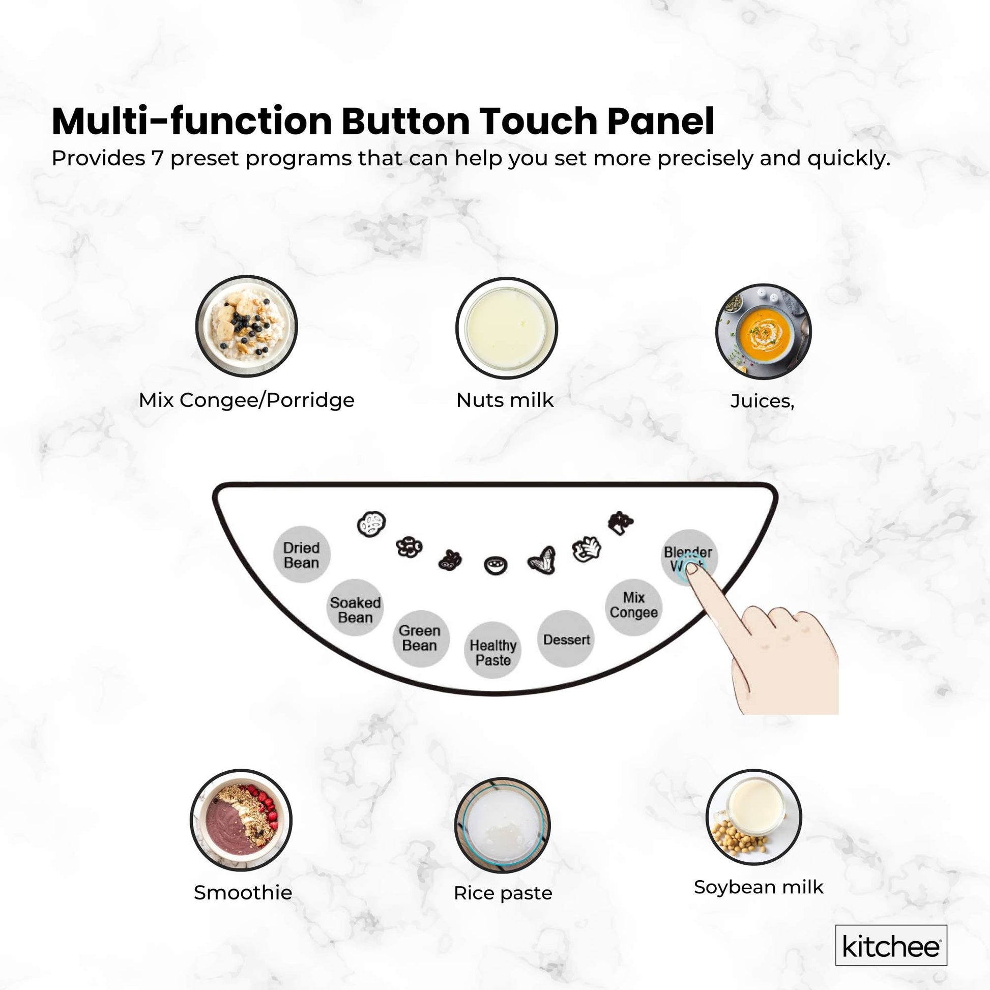 The Soy Milk and Soup Maker is a multifunctional, fully automatic kitchen appliance, with high efficiency bottom heating to save energy.