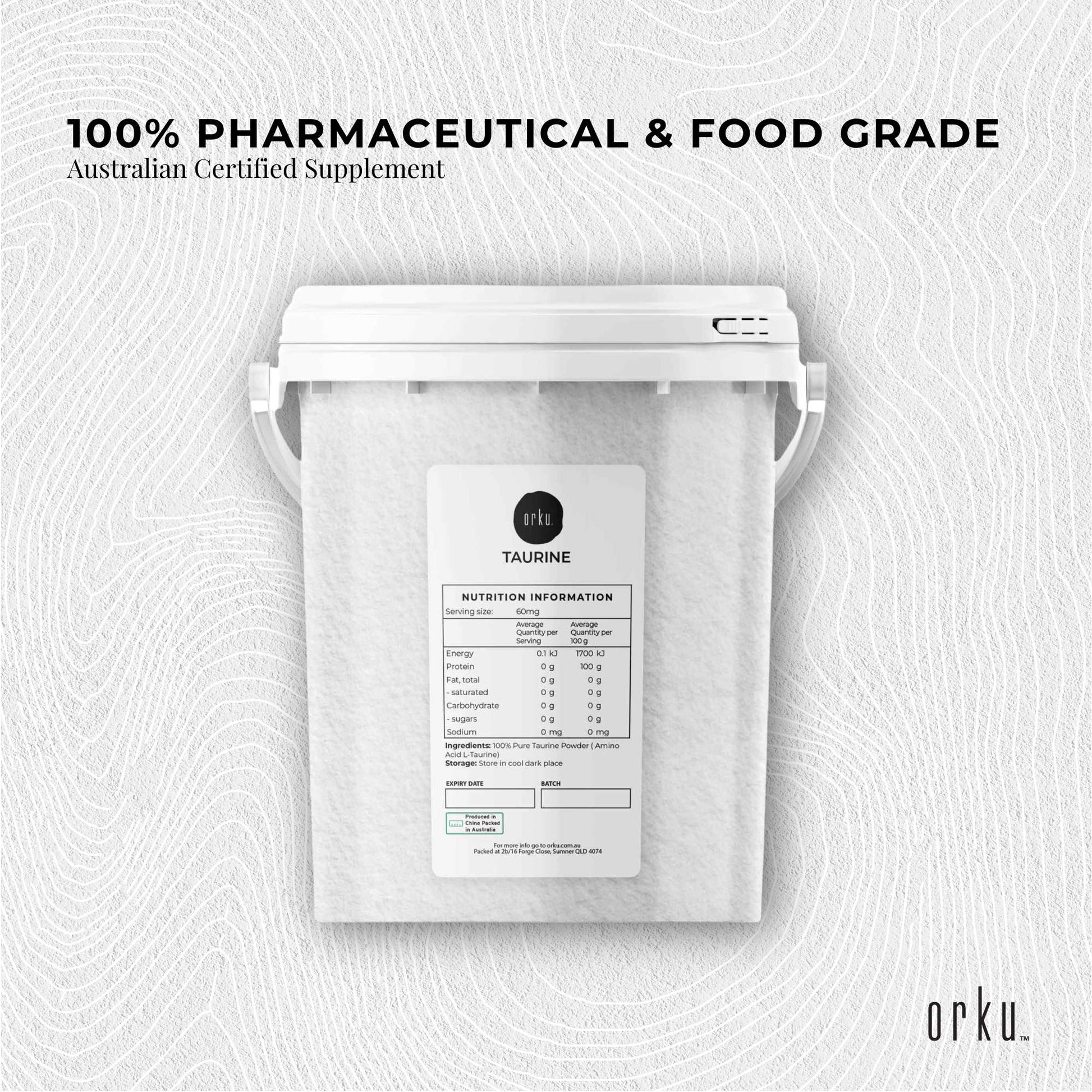 Our Taurine powder is 100% Pharmaceutical and Food Grade Australian Certified Supplement.