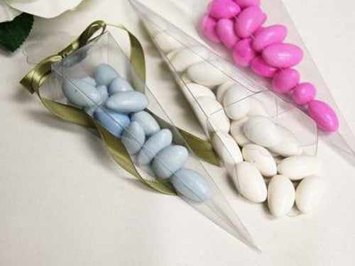 Make a distinct statement with this 10 Pack of Clear Pyramid Triangle Shaped Gift Boxes. The unique, geometric design offers a modern, high-impact presentation, providing an unobstructed view of the contents from all angles. These eye-catching boxes are ideal for sophisticated bomboniere, wedding favours, small pieces of jewelry, single gourmet chocolates, or miniature treats. Supplied flat-packed for convenience, the boxes fold easily into their striking pyramid shape, creating an unforgettable display for any event.
