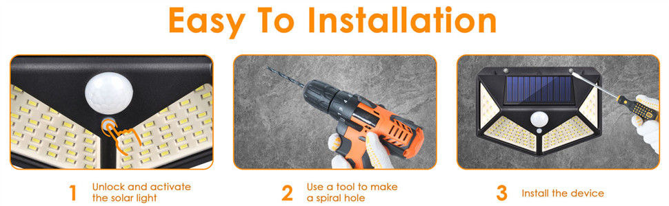 This item stands out for the following characteristics: 3 Intelligent lighting modes - sensor mode: auto turns on at night when it detects motion and stays on for another 15s after object leaves. Constantly on mode: auto turns on dim light at dusk and turns off at dawn. Dim light sensor mode: auto turns on dim light at night and turns brighter when it detects motion. Brighter and wider - equipped with 100 powerful LEDs and wide range design, solar lights provide excellent illumination of up to 1000 lumens, increasing both the angle and area of illumination. All weather-resistant - waterproof IP65, made of durable ABS material, these solar lights are solidly engineered to stand any weather (either rain, sun, wind, or snow) and will last you for years.