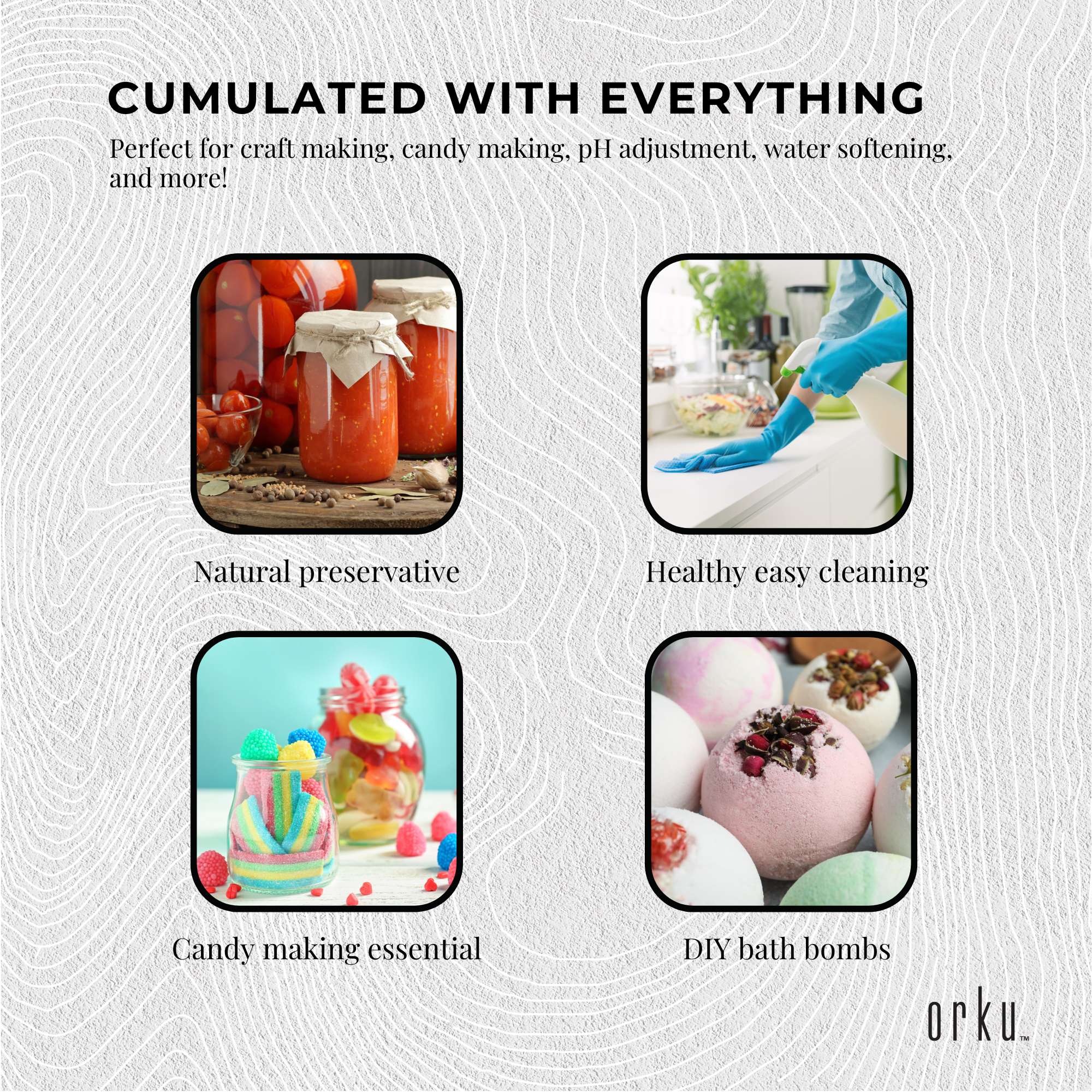 Our Citric Acid is fully compliant Food Grade GMO Free Certified BP / EP / JSFA / FCC / E330. Packages come in quality sealed and resealable bags.