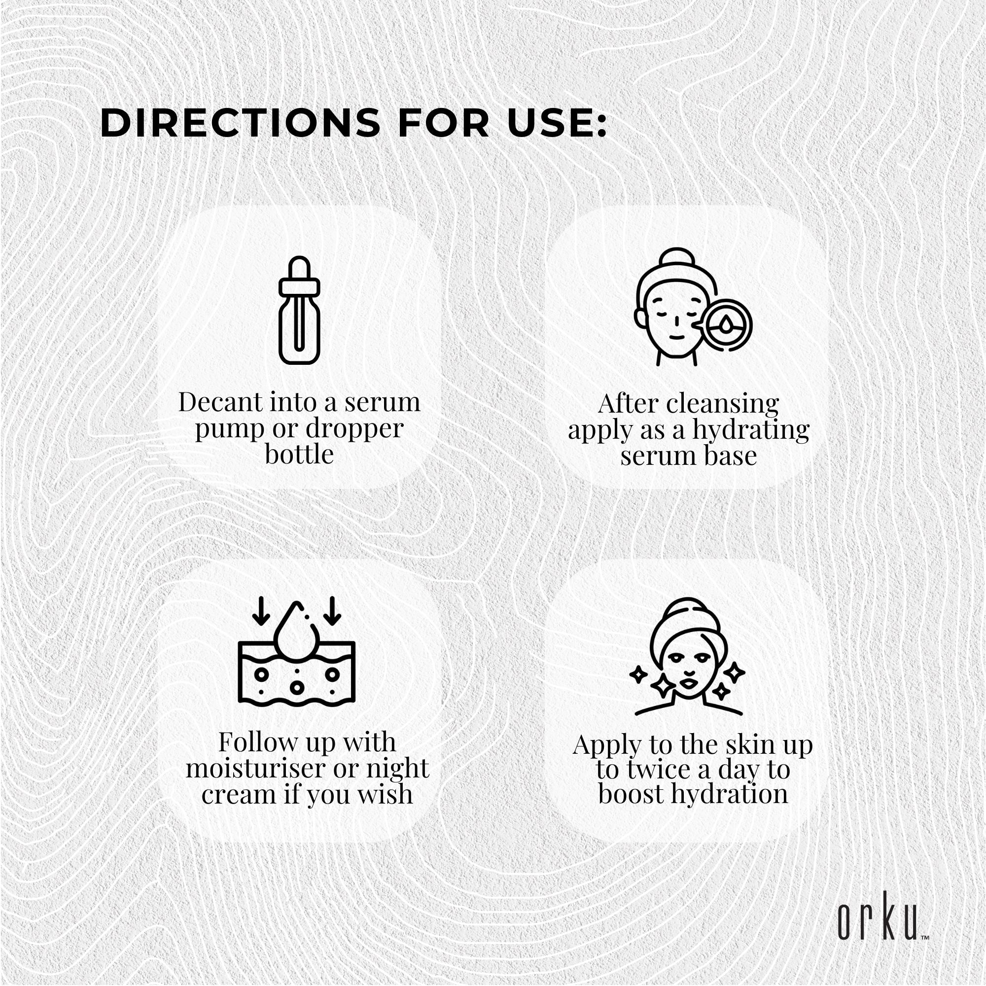 Incompatible Ingredients: Adding high levels of salt, alcohol or oils will reduce the stability of the gel structure and may lead to a precipitation of the hyaluronic acid and thickening polymers.Directions For Use: Decant into a serum pump or dropper bottle and use after cleansing as a hydrating serum base. You can then follow up with moisturiser or night cream if you wish.Apply to the skin up to twice a day to boost hydration, reduce skin irritation and boost skin resilience and barrier function.