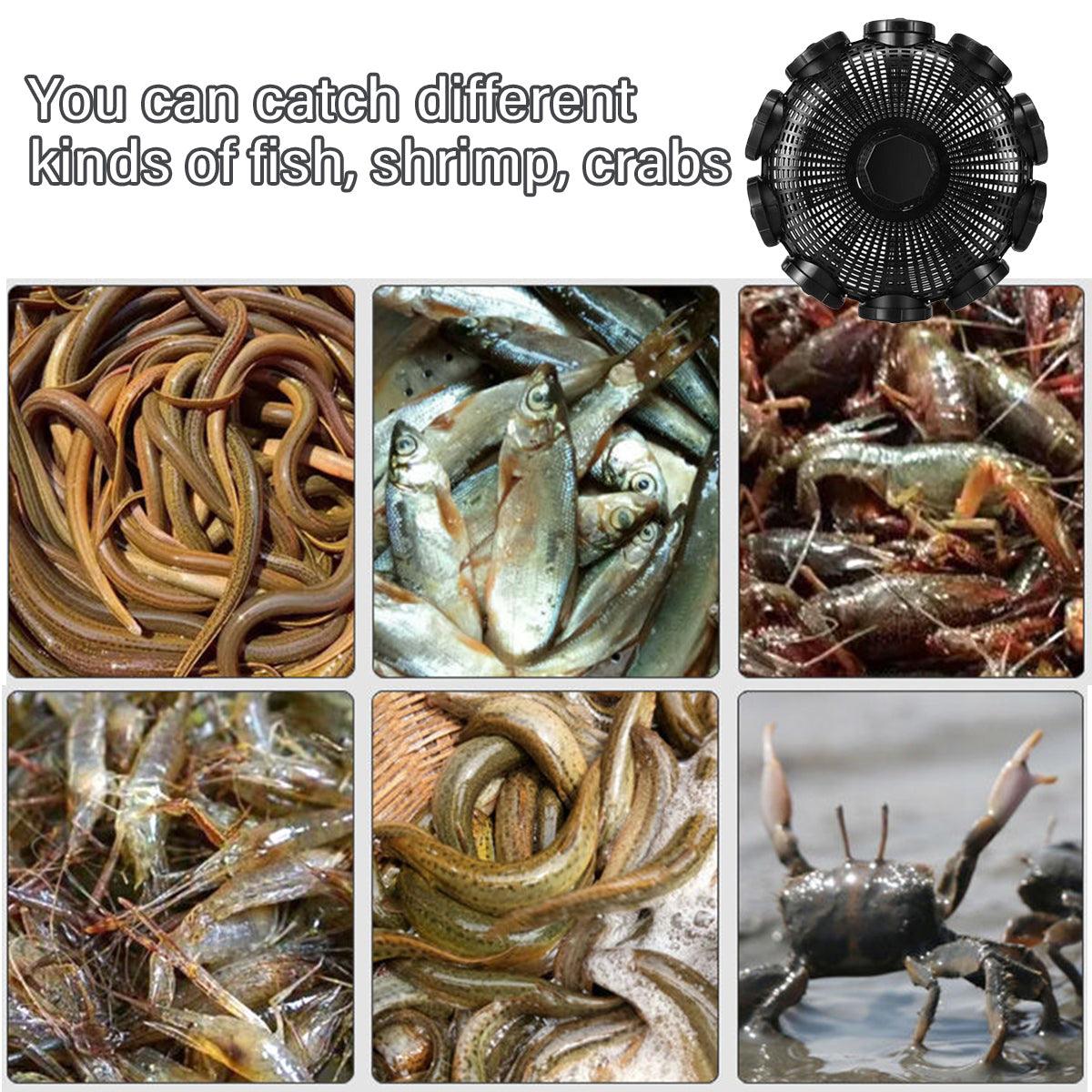 Made of high-quality plastic, it features a durable and robust construction that ensures long-lasting use in various water environments. The multiple entrance design increases capture probability, making it ideal for both professional and recreational fishermen. Its compact and portable structure allows for easy transportation and setup in ponds, rivers, lakes, or coastal areas.