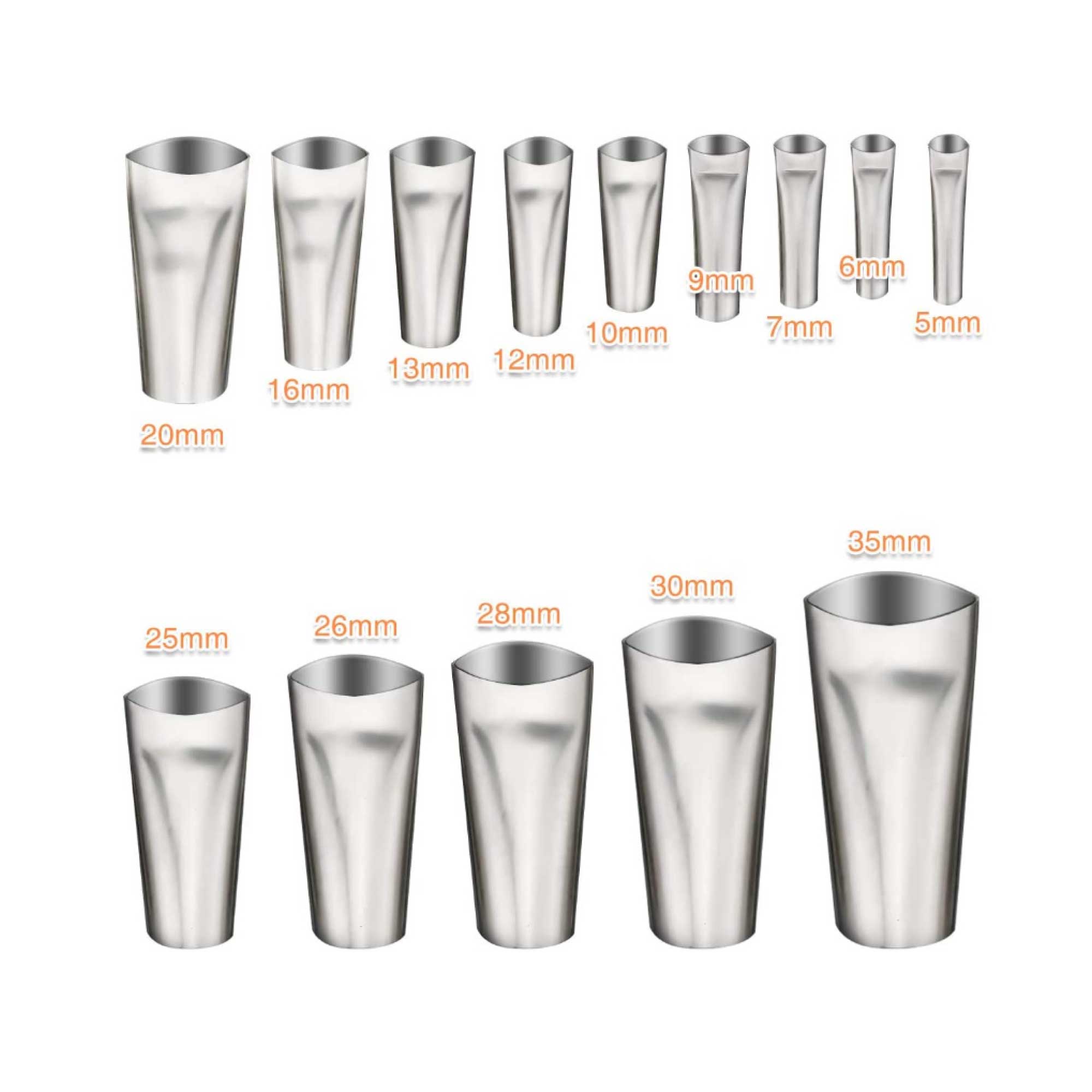 This 14 piece caulking nozzle set made with resistant stainless steel is suitable for anybody who is using caulk or sealant. Made with a 45 degree duckbill design, application is made easy. The nozzles range from 5mm up to 35mm.