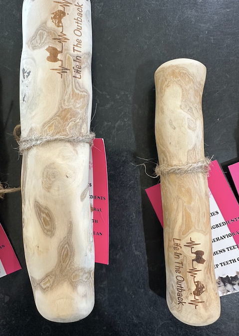 Choose Life in the Outback Coffee Wood Chews, where every bite is a step towards your dog's well-being. With sizes tailored from X-Large to Medium, find the perfect fit for any companion and make an eco-conscious choice that supports dental health, digestive comfort, mental stimulation, and environmental responsibility.