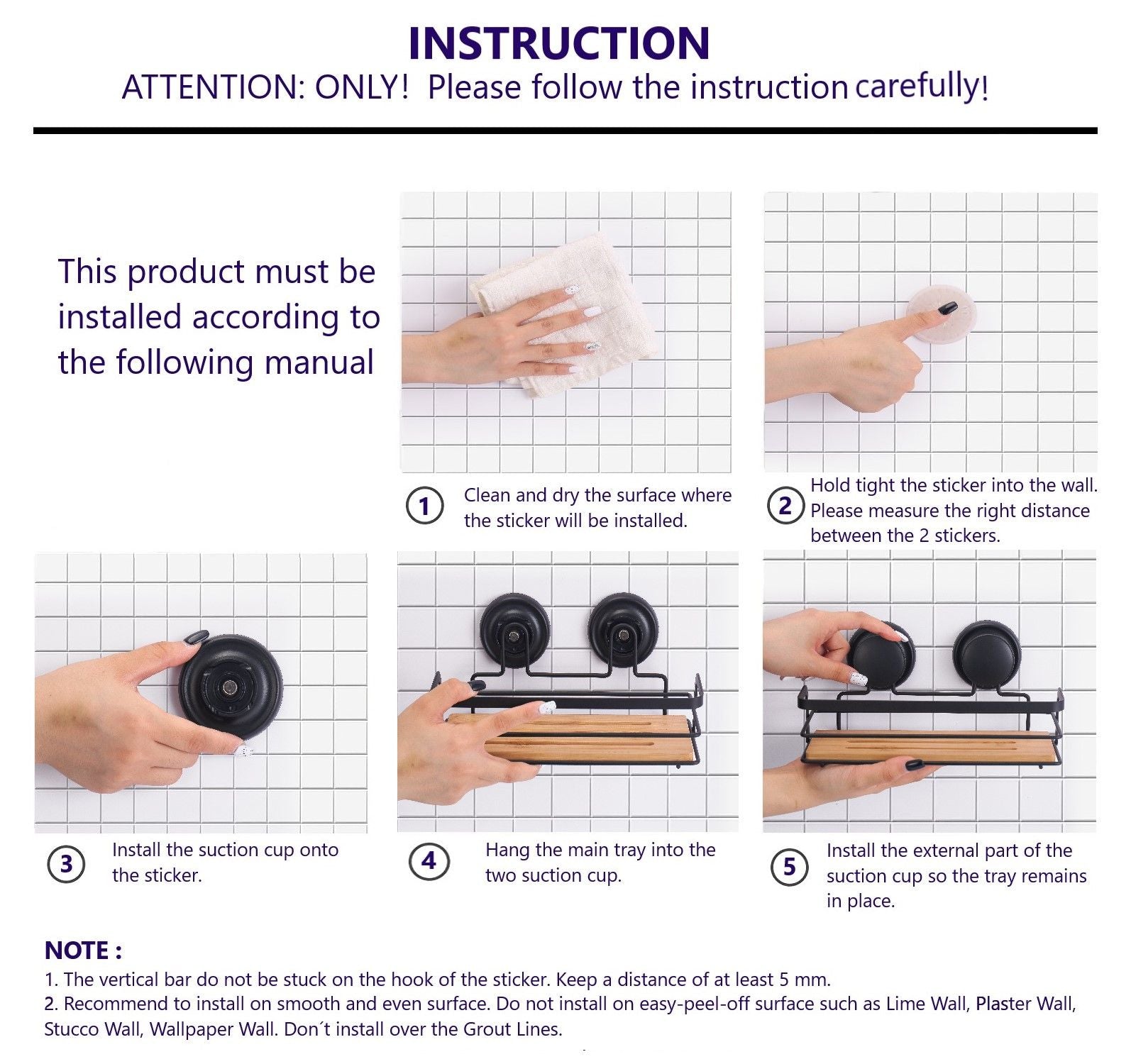 This item features a premium vacuum suction cup for no-drill installation. With two tiers, it effectively doubles your storage for shower products, allowing easy access to your essentials. Constructed from high-quality SUS 304 stainless steel and eco-friendly bamboo, this rustproof and scratch-resistant caddy is designed for durability and fits snugly in 90° right angle corners.