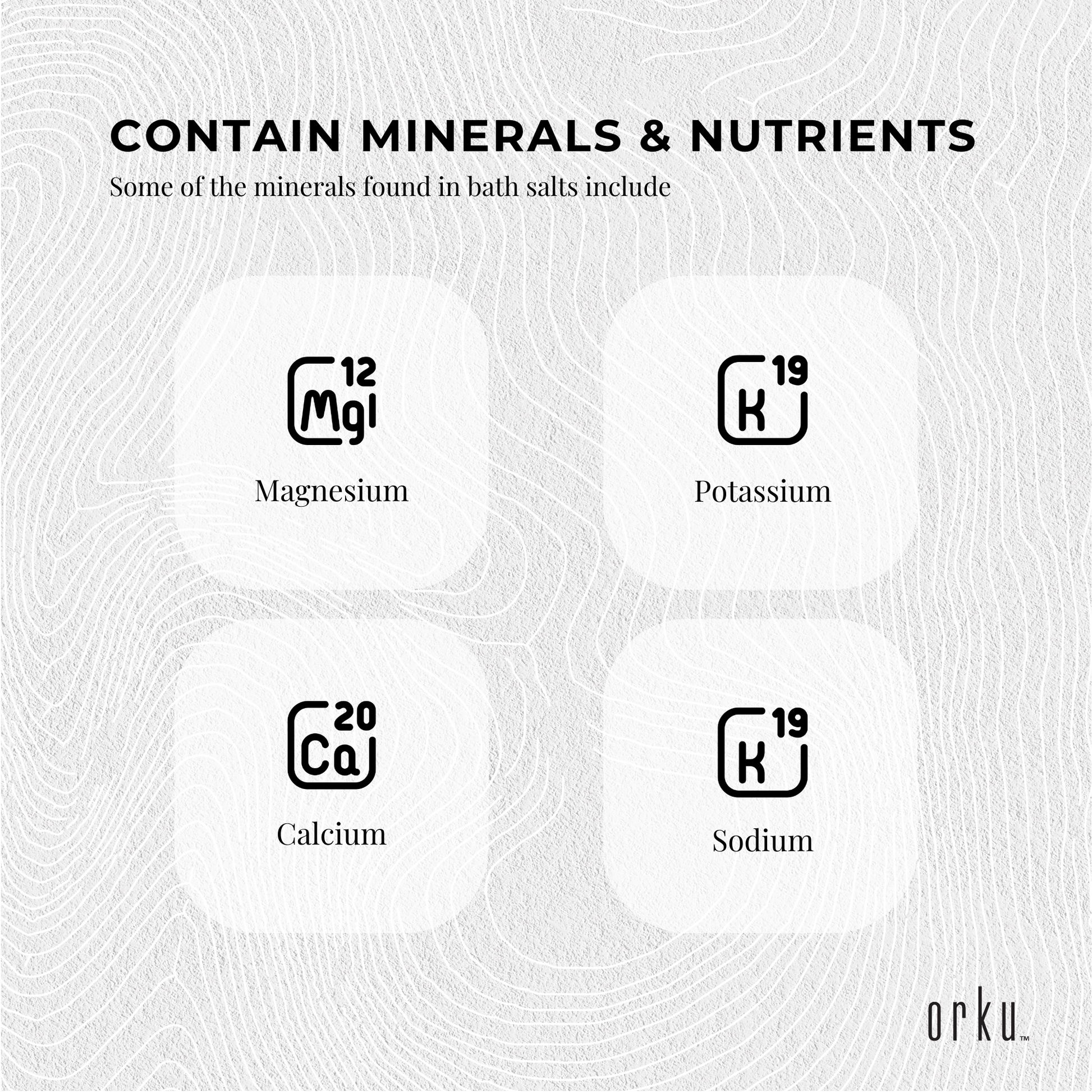 Bath salts in their natural, pure form contain beneficial minerals and nutrients that may keep your skin smooth, soft, and supple. Some minerals found in bath salts include magnesium, potassium, calcium, bromide, and sodium. They are water-soluble, pulverized minerals added to water for bathing, improving cleaning and enhancing the enjoyment of bathing.