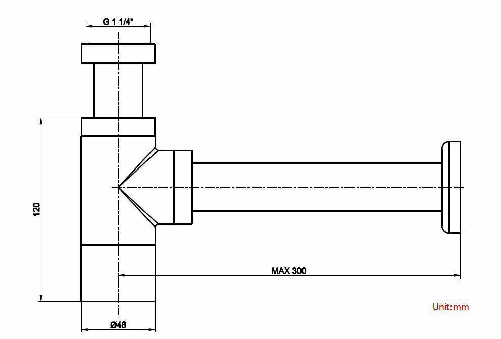 • Approx. 90mm adjustable from the bottom of the waste to the height of the bottle trap outlet