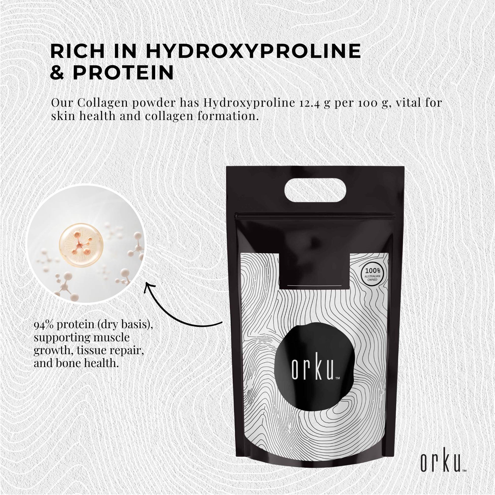 Orku Bovine Collagen Hydrolysate is a bioactive peptide protein that supports the body's own collagen found in bones, joints, skin, hair, and nails.