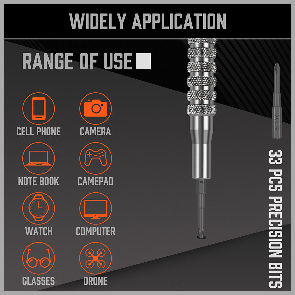 1x 33 PC PRECISION SCREWDRIVER SET BITS PHILIP FLAT SLOTTED TORX HEX ELECTRONIC FIX