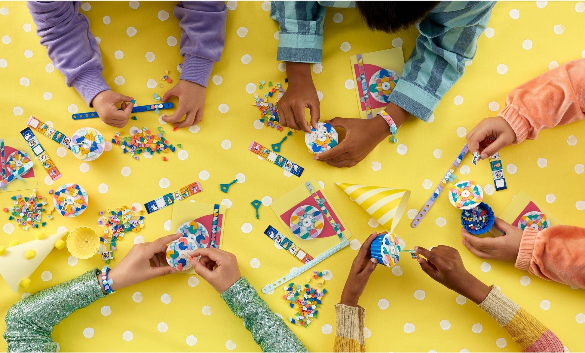 The ultimate LEGO DOTS partyThis imaginative kit features 6 customizable cupcakes, with icing that can be removed to reveal a secret storage compartment inside, 6 bracelets, 6 bunting sections, and the string to hang it up, plus plenty of tiles, flags, charms, and stickers for kids to express themselves however they like. There’s also party inspiration to help parents make it the best day ever for their child.