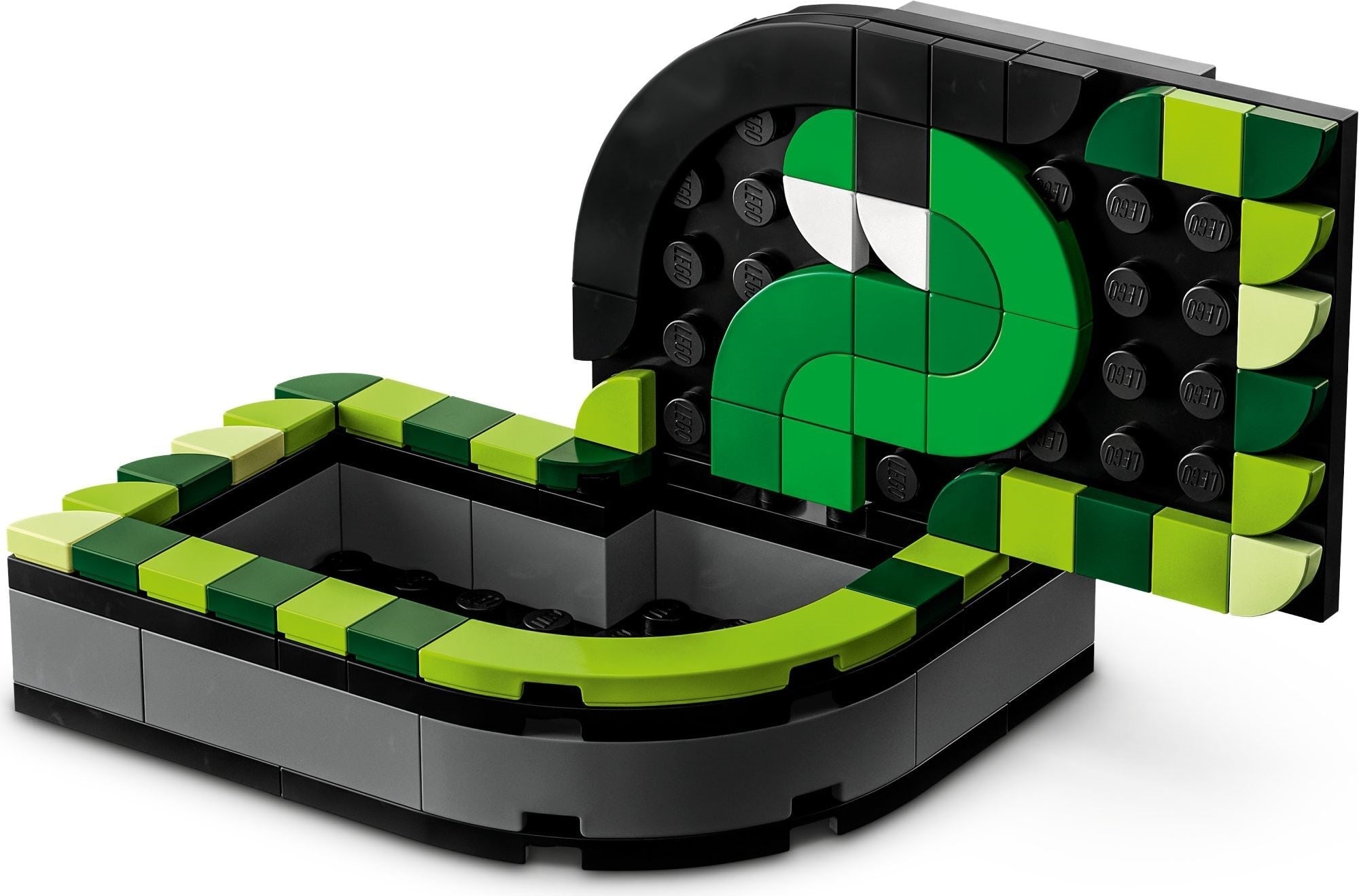 Magical LEGO DOTS desk setThis imaginative DIY kit features 4 different room decor items: a Golden SnitchTM note holder, a picture frame with decorative add-ons, a scarf-shaped tray, and a lockable secret box, plus an 8x8 adhesive patch and plenty of tiles, including 10 out of a possible 16 randomly decorated tiles. There’s also inspiration included to help spark kids’ creative fun, plus guidance for assembling the 4 items.