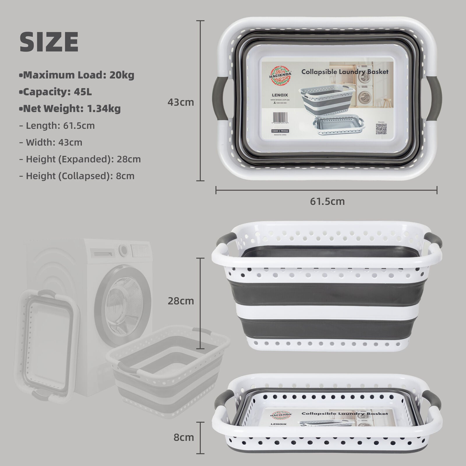 Collapsible Laundry Basket 45L makes laundry day easier and more organized.