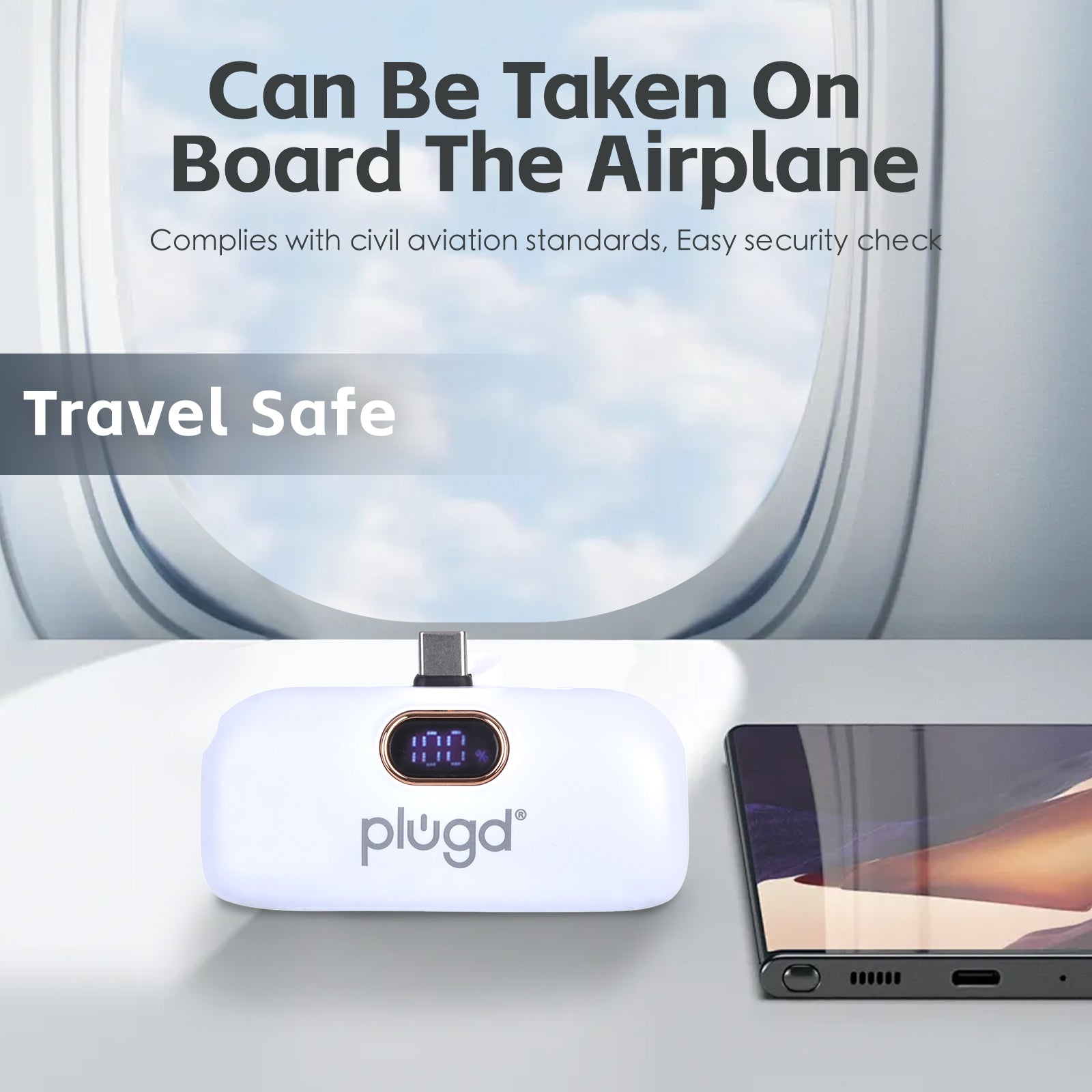 This compact 5000mAh Power Bank offers reliable power for your devices while traveling. Designed for safety and convenience, it's compliant for air travel.
