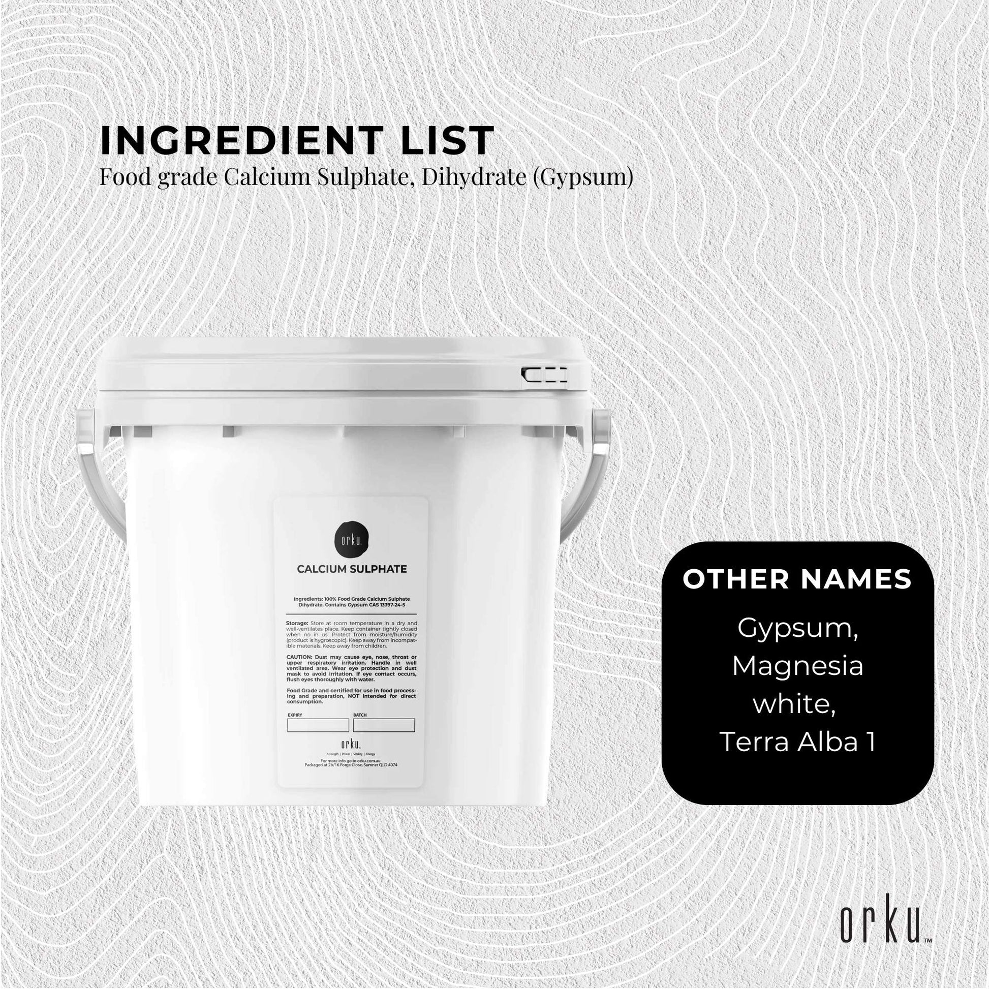 Calcium Sulphate is an odourless, white powder used in the food industry as a solidifying agent, coagulant, desiccant, anti-caking agent, stabilizer, dough improver, and leavening agent. It is also beneficial in brewing and Tofu production.