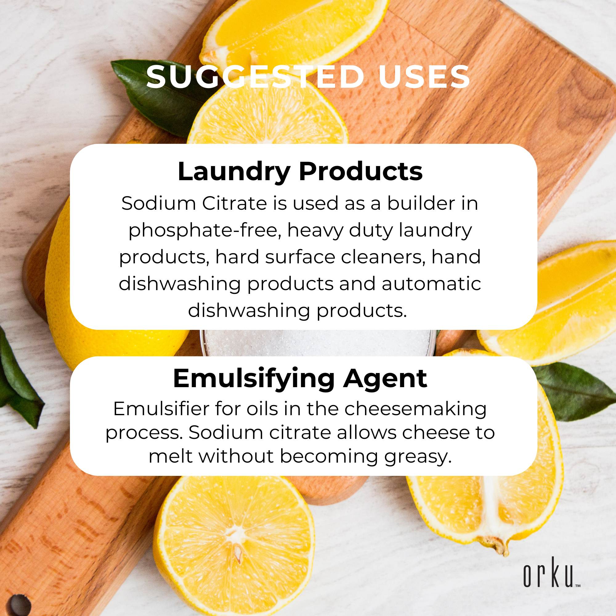 Laundry Products Sodium Citrate is used as a builder in phosphate-free, heavy duty laundry products, hard surface cleaners, hand dishwashing products and automatic dishwashing products.
