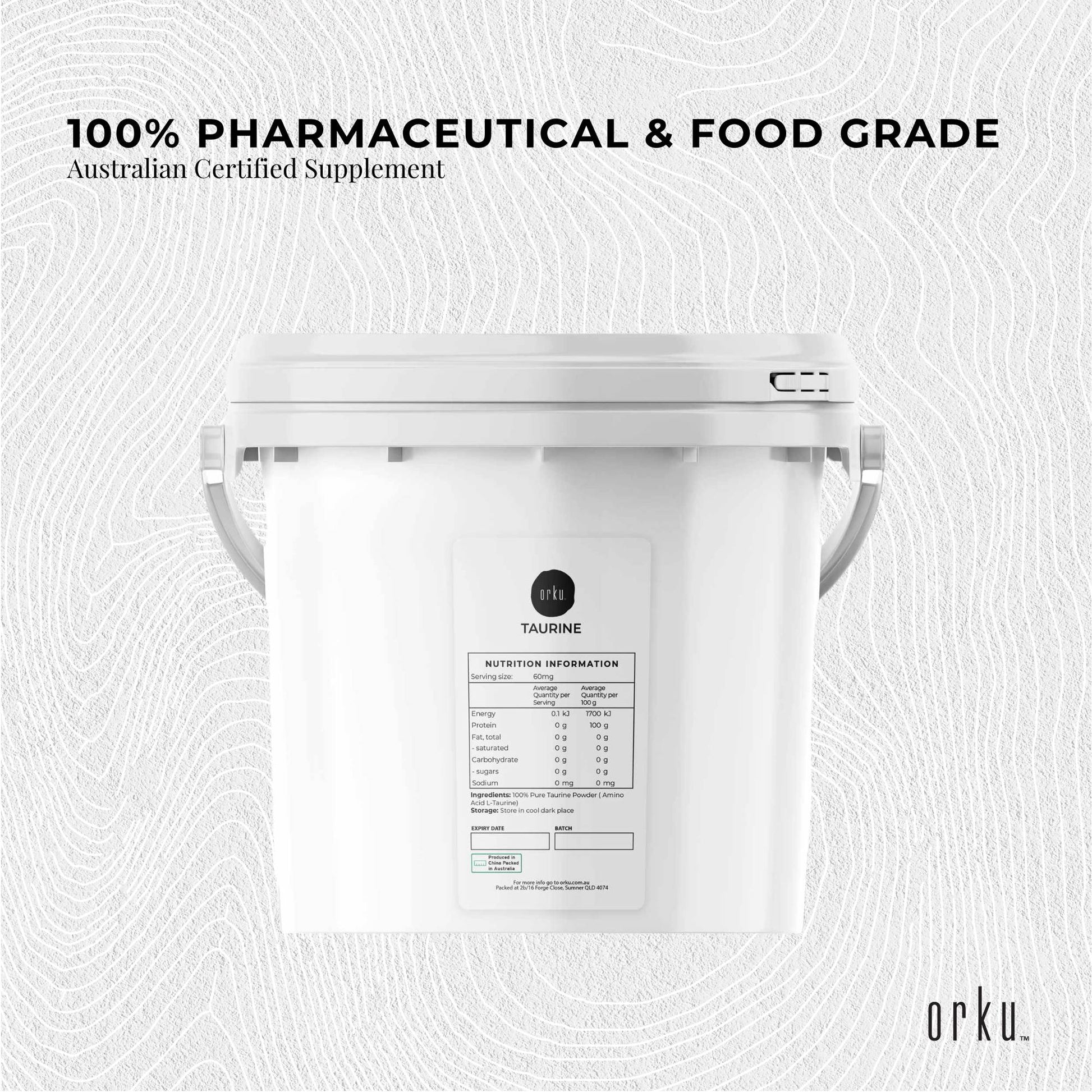 Our Taurine powder is 100% Pharmaceutical and Food Grade Australian Certified Supplement.