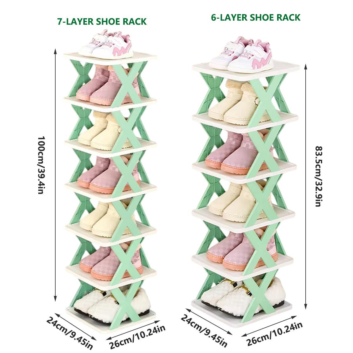 6/7-Tier Folding Shoe Rack - Space Saving Organizer - Blue