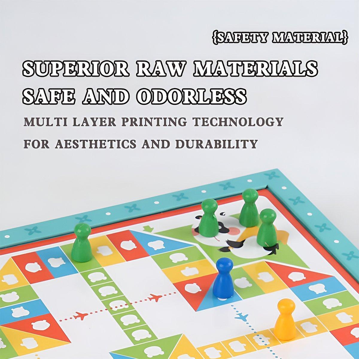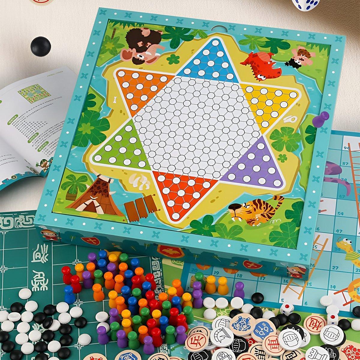 This clever game set includes eight classic games in one compact board. Enjoy strategic favourites like Chess, Backgammon, Checkers, and Snakes and Ladders, along with more games to keep everyone entertained.