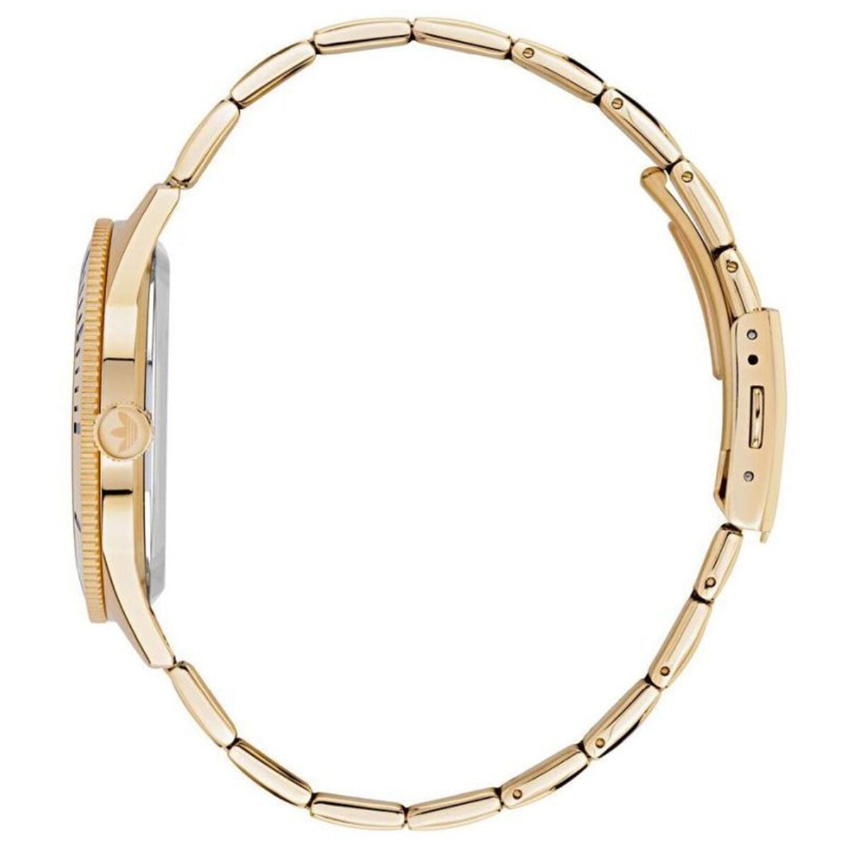 **Product Description:** Elegant yet wearable, the Adidas Edition Three Gold Watch combines a distinctive California-style dial (Roman/Arabic mix) with a brushed and polished gold-tone stainless steel case and bracelet. Powered by reliable quartz movement, protected by mineral crystal, and rated for 50 m water resistance — ideal for daily wear with style and function.