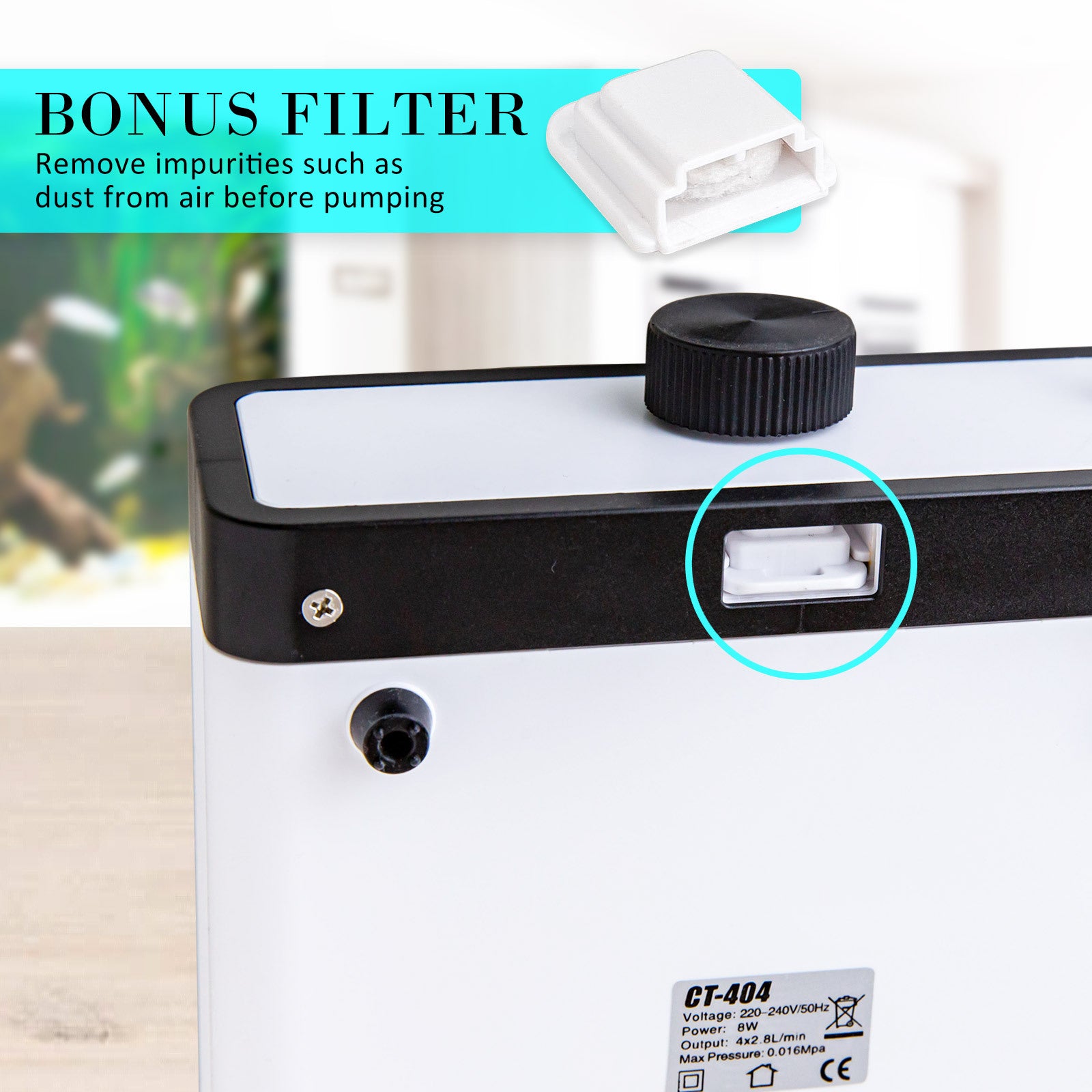 Discover the Dynamic Power Aquarium Air Pump - Your key solution for maintaining an oxygenated aquatic ecosystem with its innovative design and energy efficiency.