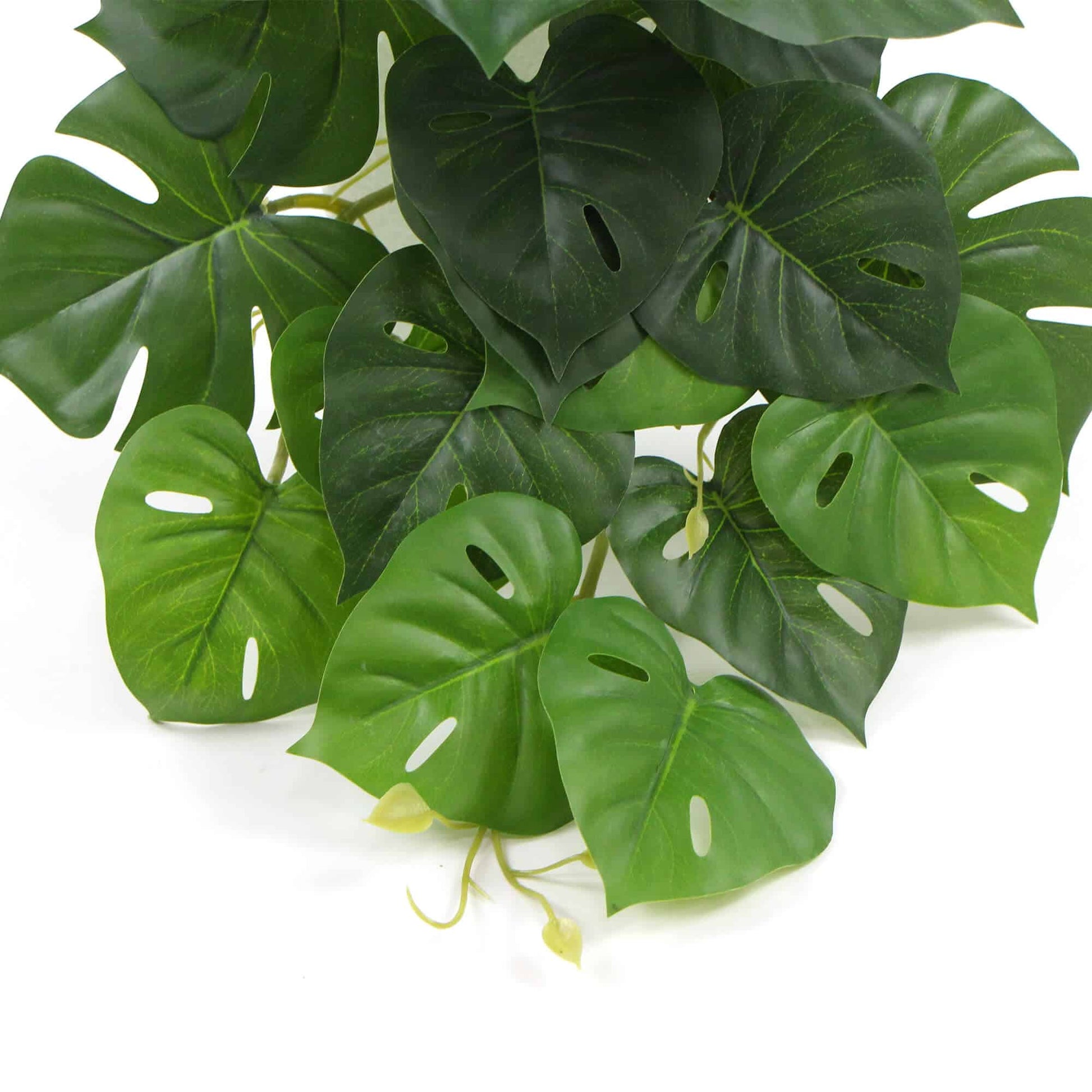 Key details of your lush artificial monstera plantSize: 50cm long, approx 25cm wide.Weight: Approximately 300 grams per plant.Usage: Indoor.Cleaning: Use water orartificial plant cleaner.Customizable: Yes easily bent to shape.