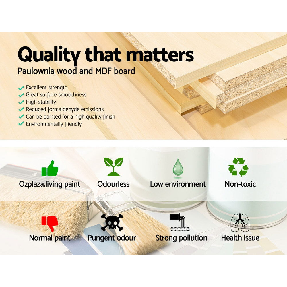 The Artiss Thyme Bedside Table combines elegance with functionality. Constructed from durable Paulownia wood and MDF, this table boasts a smooth drawer and a bottom shelf for added storage. Perfect for any room, it features eco-friendly paint and antique-inspired hardware.